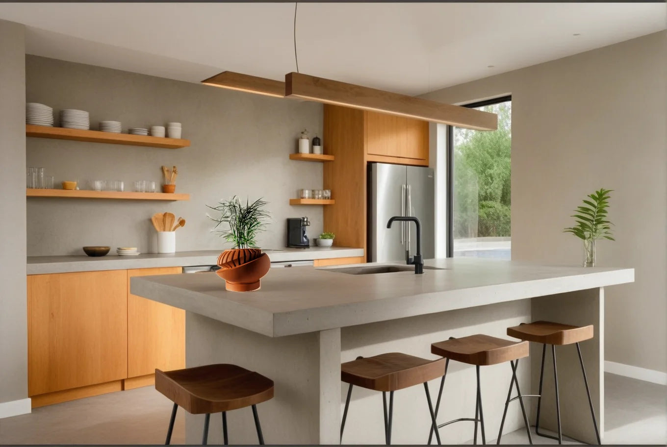 The Luxar planter carries the poise of sculpture and the softness of nature. Its ribbed silhouette catches the light in gentle motion, like ripples meeting still water. Shaped with care and precision, it feels both modern and organic—a quiet presence that holds life in graceful symmetry.